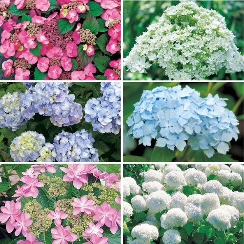 てまり咲き~ガクアジサイまでいろいろな品種の中から名称付き品種見計らいで厳選した、お得なセット。