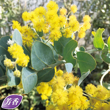 ふんわりと丸い房状の黄花は可愛らしい雰囲気。葉はアカシアの中では珍しい丸葉で、全体が繊毛に覆われ美しい。