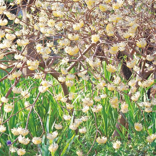 香りよく、花数多い大輪は花の訪れ。樹高1~2mにもなる生育旺盛で強健なミツマタ。黄色い球形の花序の直径は5~7cmにもなり、在来種と比べ大輪で枝も太く分岐力もあり花数も多くなる。ジンチョウゲ科