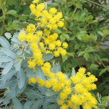 銀白色の葉と鮮やかな黄花とのコントラストが美しい。リースやドライフラワー素材にも人気。庭植えにすると大きくなり、よく育つので適宜剪定するとよい。「ミモザ」と呼ばれる樹種は本種を指すことが多い。