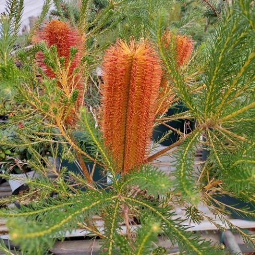 オーストラリア原産の常緑で、ブラシのような独特な花で、バンクイシアの中では丈夫で育てやすく、花付きにも優れる。ヤマモガシ科