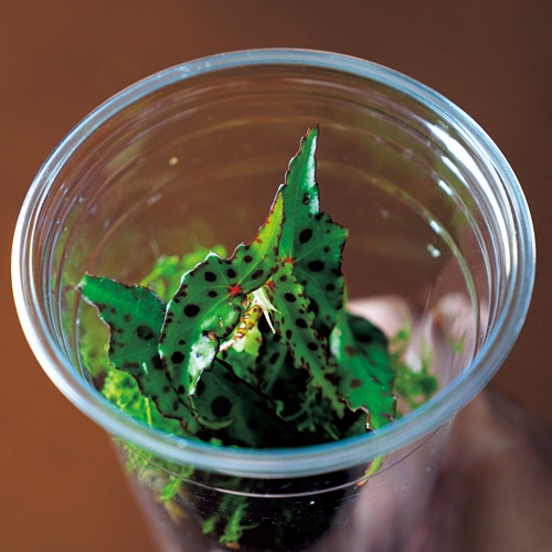 赤いドットが毒々しさを強調させる、まさに原種ベゴニアといった雰囲気のベゴニア。木立性ではあるものの、全体的に小さくこんもりと育つ。シュウカイドウ科