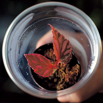水苔が乾いたら水やり、カップ内が曇ったらフタを開けて湿度を調整。