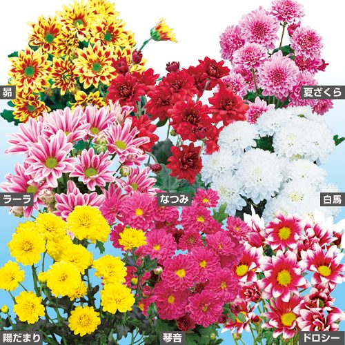 供花におすすめの7、8月咲き変わり菊8種セット。キク科