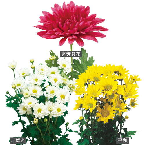 お盆のお供え用としてお使いいただける、色と大きさが複数入ったセット。キク科