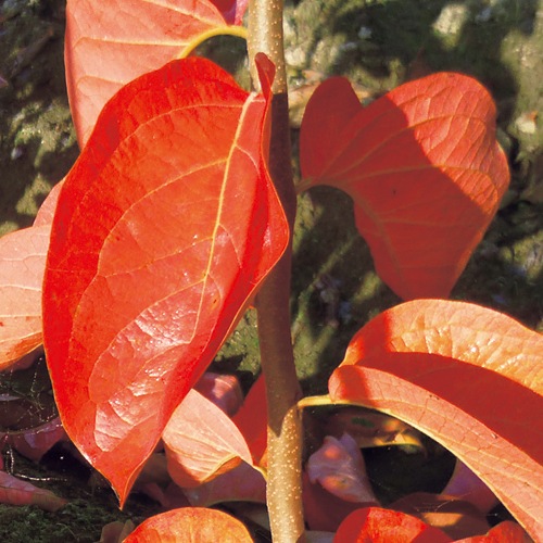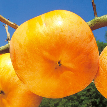 扁円系。紅葉専用品種だが、糖度が約18度と甘みが強く、程よく締まった肉質で食味良好。実も葉も楽しめる魅力的な品種。秋の深まりとともに、美しく紅葉する。カキノキ科