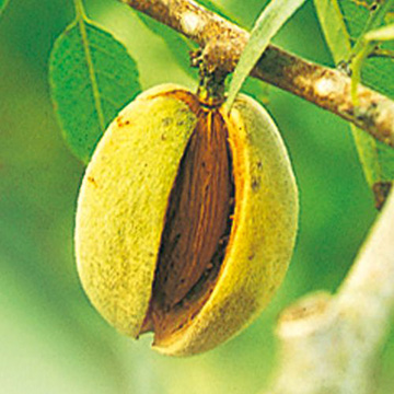 果肉は薄くて熟すと裂開する。タネをいって食用にできる。春に咲く花も大輪で美しい。本種は高温多湿でも栽培しやすい。バラ科