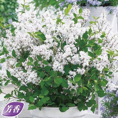 従来種よりも大きな穂をたくさんつけるので、満開時は株を覆い尽くすように花が咲き華やか。成長しても約1.2mと非常にコンパクトにまとまる樹形で、甘い香りが間近で楽しめる。小さな庭やバルコニーでも育てられ、寒冷地にもおすすめ。