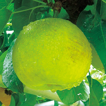 甘酸バランスがよく、果汁の多い青ナシ。円形で玉揃いがよい。バラ科