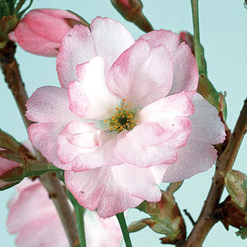 若木のうちから花を楽しめる一才性の桜。樹高も2~3mほどで扱いやすい。小枝はあまり伸ばさず、3~4本の主枝に美しい紅色花をびっしり咲かせる。盆栽にも人気。別名「朝日山」。