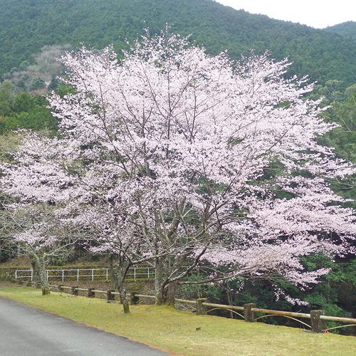 クマノザクラは、紀伊半島南部に自生している野生のサクラ。一重咲きの花は白から淡紅色(先端が濃くなる場合がある)。樹形は細くしなやかな枝ぶりで柔らかい。葉が開くよりも先に花が咲くため、ソメイヨシノなどと同様に観賞価値が高い。開花時期は3月中下旬にかけて見頃となり、卒業という新たな門出を祝うシンボルにピッタリ。