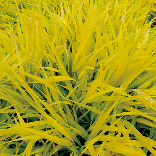 別名「ウラハグサ」。葉が付け根でねじ曲がっていて葉の裏表が逆になっていることから「裏葉草」と呼ばれます。本州の山地のがけなどで見られ基本種の青葉のほか、斑の美しい斑入り品種。葉先が赤く色づく品種など様々。株が小さいうちは寄せ植えなどにも適す。大株になると見事。イネ科