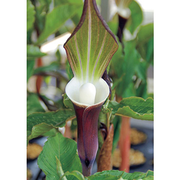 独特の仏炎苞の形がおもしろい