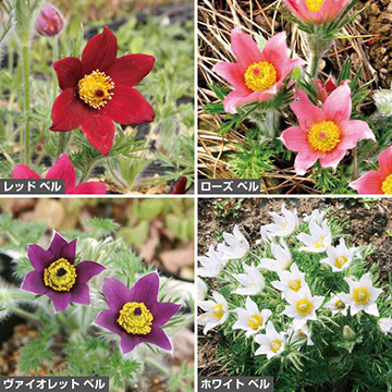 西洋オキナグサの園芸品種で、早春から大輪花を咲かせる。ロックガーデンにもよい。