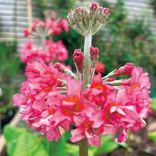 「ヒマラヤ周辺で見られるサクラソウの一種で春を代表する多年草」キャンドルライトシリーズは英国作出品種。セミダブルの花を輪状に着け、花茎は花首までシルバーを帯びる特徴的な最新シリーズ。サクラソウ科