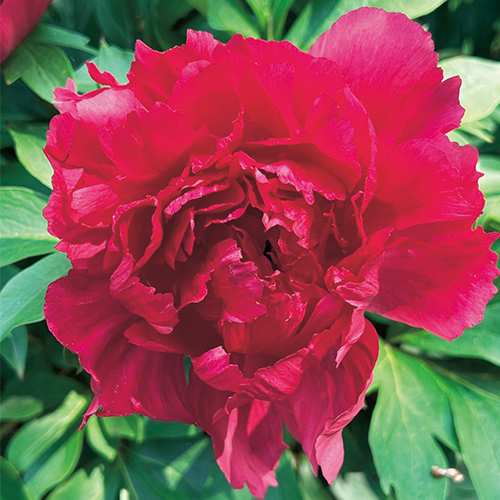 珍しい赤色の整った完全八重咲花が特徴。ダークグリーンの夏の草姿、栗色に色づく秋の茎葉も美しい。ボタン科