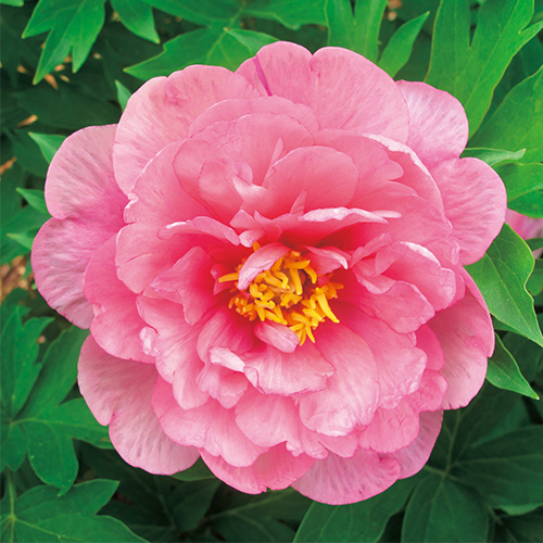 甘い香りがある澄んだピンク色八重咲花が魅力。美しい花の晩春、澄んだオリーブグリーンの葉が茂る夏、マルーン色の秋の色合いが楽しめる。ボタン科