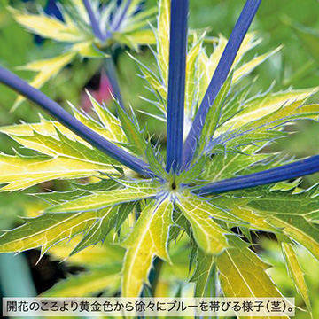 今までにないような黄金色の輝きが魅力。春季の美しい黄金色は、開花のころより徐々にブルーを帯びていき絶妙な混色となり、葉はライムグリーン色に変化。ガーデンで一際目立つ存在として楽しめる。セリ科