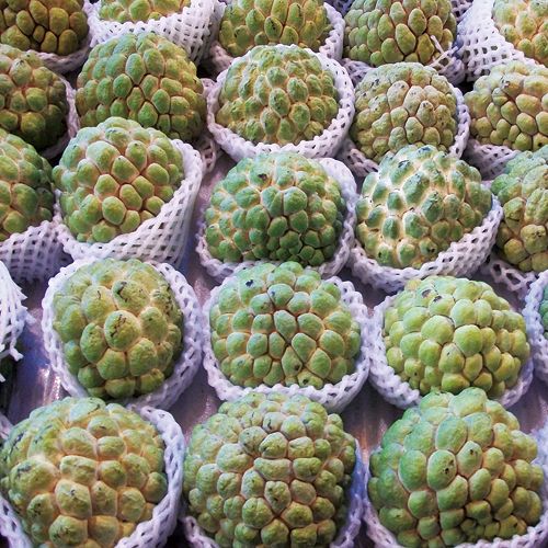 上品な香りが漂う白色の果肉はクリーミーで、平均糖度約20度と甘い。若木のうちから花つきがよい。バンレイシ科