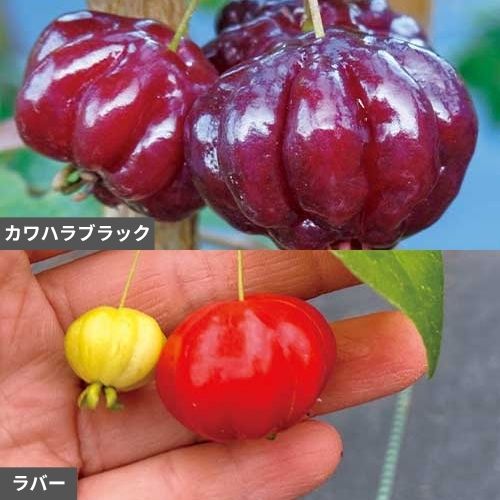 | 【セット内容】 | 以下2種各1本 計2本1組 ■カワハラブラック ハワイで育成された優良品種。果皮は黒色。 ■ラバー カリフォルニア産の大玉品種。果皮は赤色 |