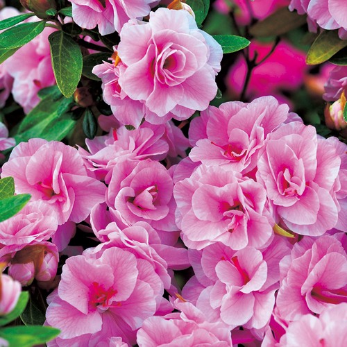 花つきがよく、まとまりやすい樹形で育てやすい。比較的寒さに強くマイナス4℃ほどまで耐える。豪華な桃色八重咲き花。ツツジ科