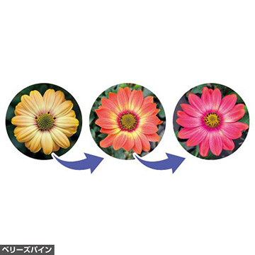 咲き始めから花色変化が楽しめるユニークカラー。耐暑性、連続開花性が高い。キク科