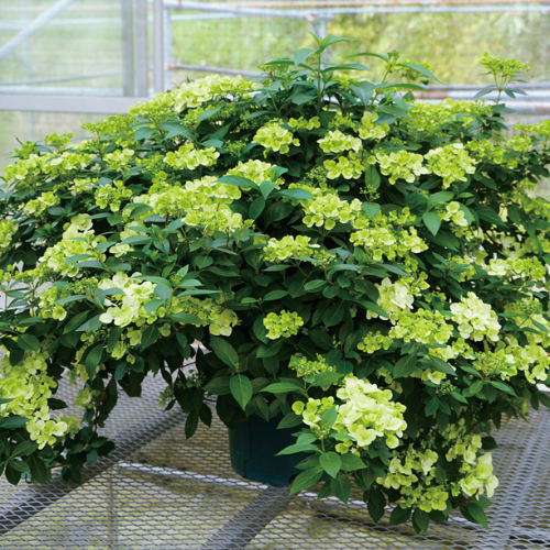 常識と覆す新ジャンル、側芽からでも花が咲き、 株いっぱいに豪華に咲き誇る。手がかからず栽培容易で、無剪定で管理できる画期的なアジサイ。アジサイ科