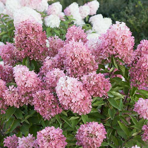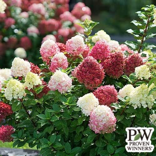 花色はグリーンからピンク、レッドに変化。色変化が楽しめる。株を覆うように密に咲く。新枝咲きのため、剪定期を選ばない。通常のアジサイと違い、夏の剪定の必要がない。プランターでも楽しめるコンパクトなノリウツギ。アジサイ科