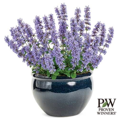 コンパクトでまとまりのよい、矮性品種。耐暑性に優れ秋まで連続開花する。一般品種より早く開花しはじめ、長期間楽しめる。花穂5~10cm。シルバーリーフにネペタ特有の柔らかな香り。ローズガーデンで楽しむ愛好家が多く、寄せ植えやグランドカバーにおすすめ。シソ科