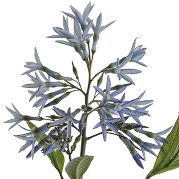 爽やかな花色&小さな星形のかわいい花。分枝性に優れるため、たくさんの花が咲く。萌芽期は葉と美しいブラックステムが魅力。耐寒性・耐暑性ともに優れる。栽培が簡単でローメンテナンス。キョウチクトウ科。