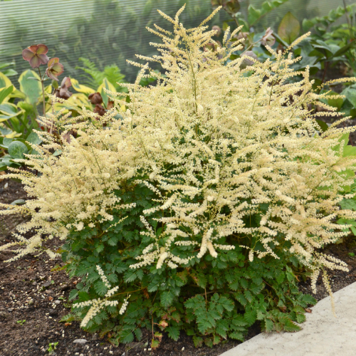 豊かな花穂とレース模様の美しいディテールの葉。分枝性に優れ、たくさんの花はまるでブーケのよう。耐陰性が高く、シェードガーデンでも楽しめる。栽培が簡単でローメンテナンス。ボリュームのある株に優雅なシルエットは植栽のアクセントにおすすめ。バラ科。