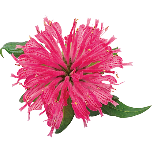 モナルダ(ベルガモット)特有の柔らかな香り。コンパクトな草姿にたくさんの花が咲き、まるでブーケのよう。一般種に比べ、分枝性に優れ、うどんこ病に強い。耐寒性・耐暑性ともに優れる。ローズ色花。シソ科。