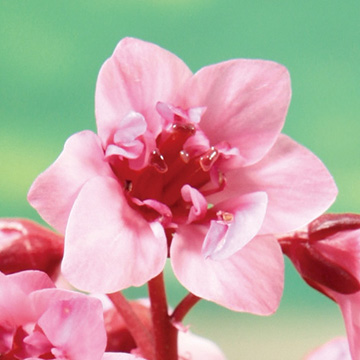 株張り20cm程の小さなヒマラヤユキノシタ。花付きがよく、小さな株に濃いピンクの花を多数咲かせ、とても鮮やかでインパクトがある。光沢のある葉は、冬には深いチョコレートブラウンへと変化。ユキノシタ科
