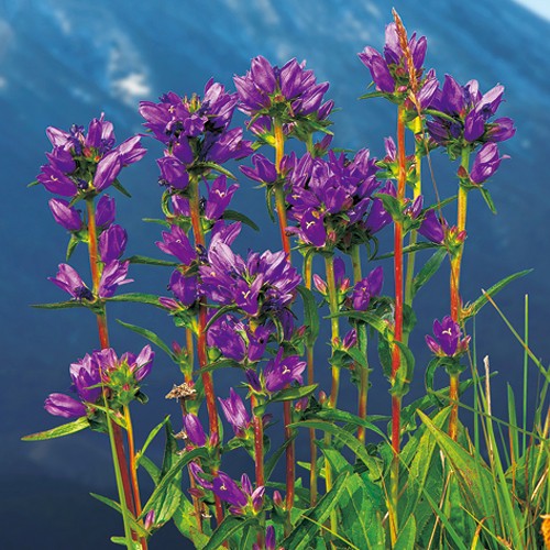 鮮紫色のリンドウに似た花は、花粉がないため花もちがよい。とても強健で茎も太く大型で、小株にも多くの花をつけ、熊本県の自生種や西洋種(カンパニュラ)とも異なる特長をもつ魅力種。キキョウ科