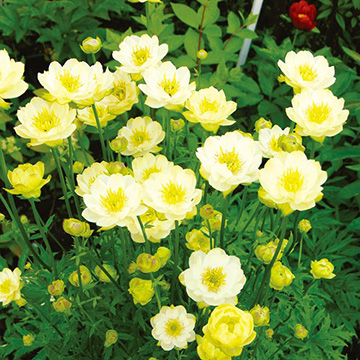 すっと伸びる茎先に八重ボール状花をつけ、葉は深い切れ込みの入る菊葉。他の植物との相性もよく、ナチュラルガーデンなどで映える。水揚げよく切り花にもおすすめ。キンポウゲ科
