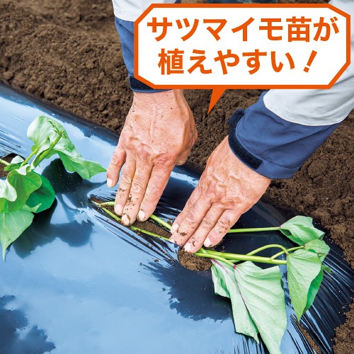 水平植え、斜め植えがしやすくなり、中小サイズの良質なサツマイモが作りやすくなります。余った植え穴にはほかの作物も混植可能。追肥もしやすい。(日本製)