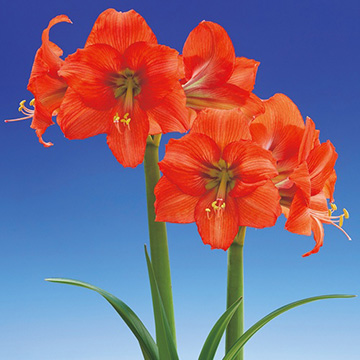 中輪・中型の橙花種で比較的コンパクトにまとまる。通称「アマリリス」。春と秋は生育旺盛なので水をよくやり、真夏と真冬は半休眠するので水を控えるのがポイント。ヒガンバナ科
