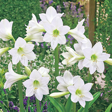 純白色花。庭植えも可能な品種。通称「アマリリス」。春と秋は生育旺盛なので水をよくやり、真夏と真冬は半休眠するので水を控えるのがポイント。ヒガンバナ科