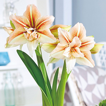 コンテナタイプの待望の複輪種。上品な朱色ラインが神秘的で美しい。通称「アマリリス」。春と秋は生育旺盛なので水をよくやり、真夏と真冬は半休眠するので水を控えるのがポイント。ヒガンバナ科