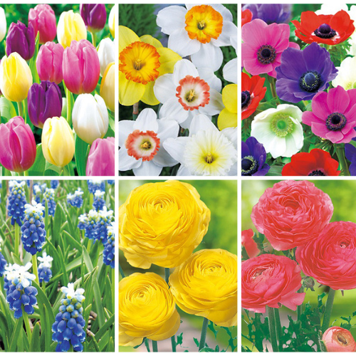 秋植え球根はこれで決まり! 春のガーデンを彩る人気のチューリップ、水仙、ムスカリ、ラナンキュラス、アネモネをミックスしたとてもお得なセット。 数量限定につきお早目のご注文を!