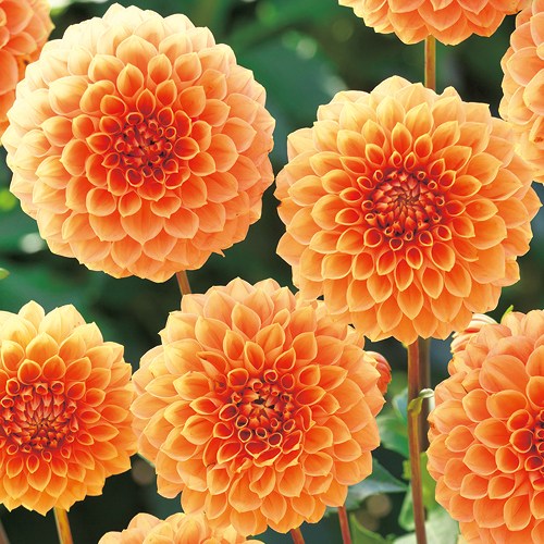 さわやかなオレンジ色の整然と美しいフォーマルデコラ咲き。強健で、切り花でも人気。キク科