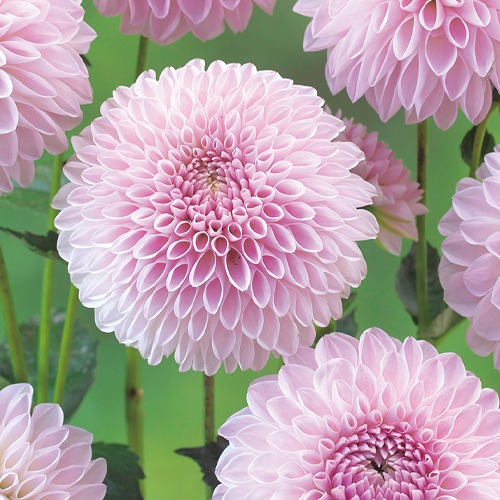上品な淡藤色花で人気の花色。ボール咲きの中では大花。茎と花首が硬い。キク科