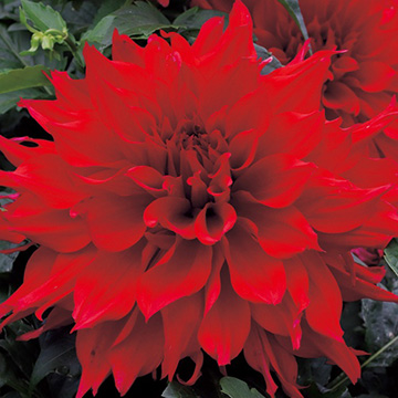 深みのある赤一色の超巨大輪。草勢は極めて頑強。迫力抜群の品種。キク科