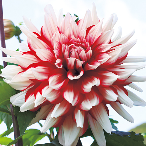 赤から白へのグラデーションが美しい巨大輪。その優雅な花色と存在感のある花容は人目を引く。雨風にも負けない太く頑強なステムをもつ。キク科