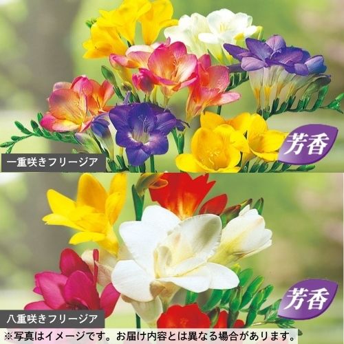 香りが良く切り花としても楽しめる人気のフリージアが満喫できるお得なセット。バラエティ豊かな一重咲き、八重咲きのフリージアを堪能できます!アヤメ科