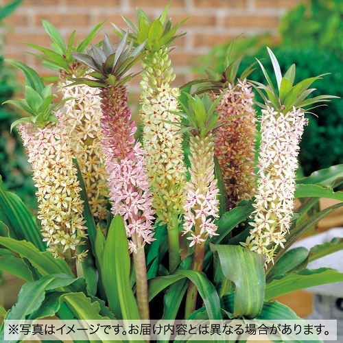 小花が穂状につき、さらに頂上に葉を生じパイナップルに似たおもしろい花穂になる。列植すると大迫力。キジカクシ科