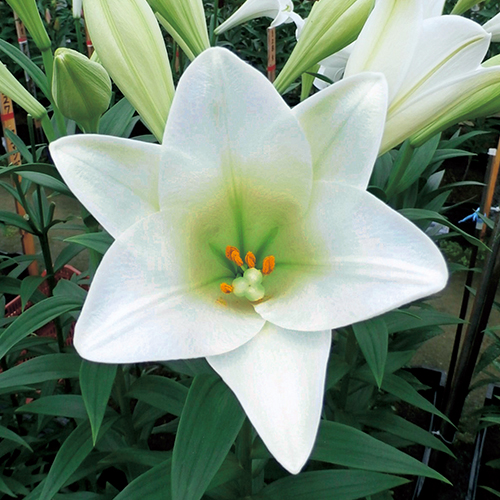 鉄砲ゆりの交配種。切り花にも人気の白色鉄砲ゆり。大きめの花で見応えがある。ユリ科