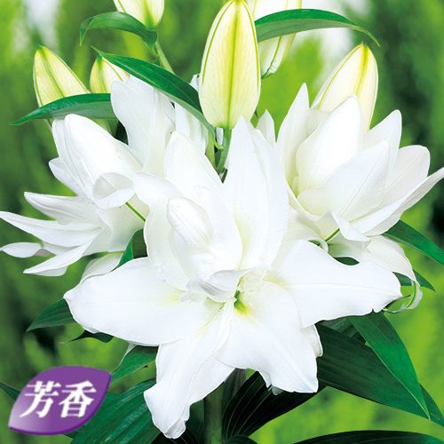 八重咲きのオリエンタルユリ。「カザブランカ」のような豪華な純白色。育てやすい。ユリ科