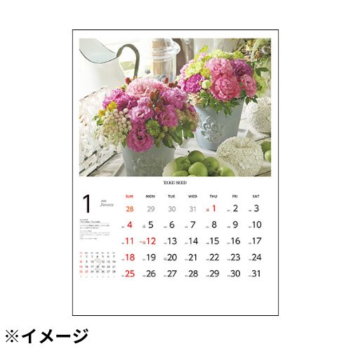 タキイ専属カメラマン渾身の撮り下ろしフォトを使用したポスターカレンダーです。花々に囲まれた生活空間が、あなたの日常にきっと潤いを与えてくれます。(日本製)