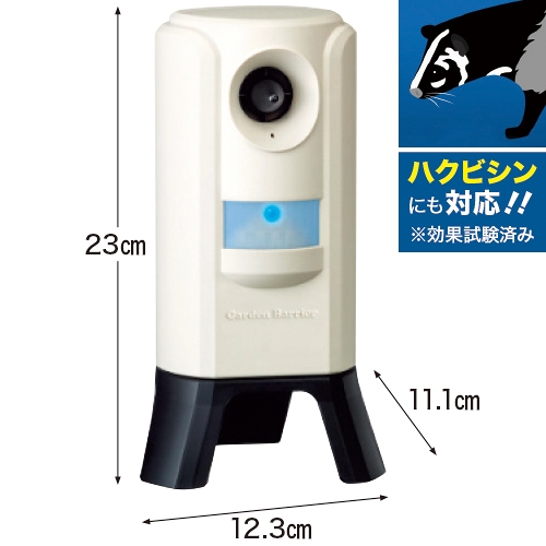 センサーで、対象動物の動きを感知し、慣れにくい変動超音波を照射することで不快な場所だと学習させ、感知エリア内の、糞尿被害を軽減します。超音波は自動で変動します。公的機関での評価試験により効果立証済み。(日本製)